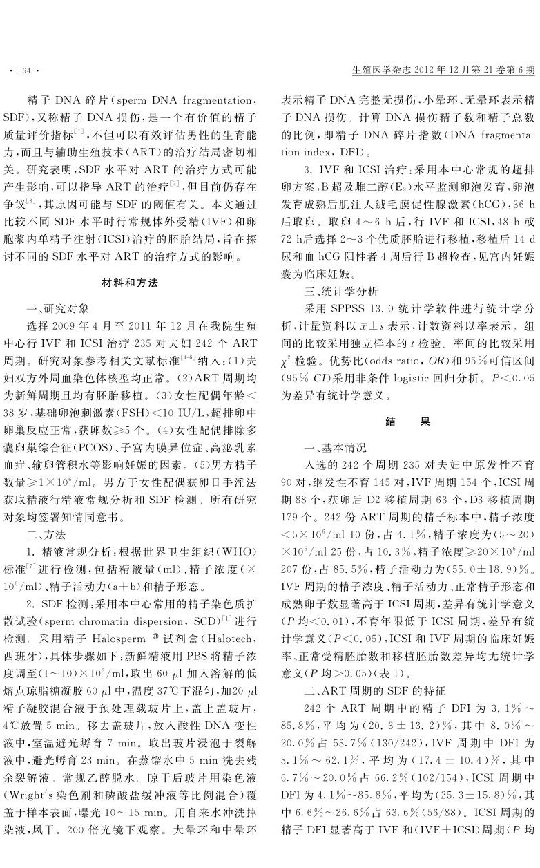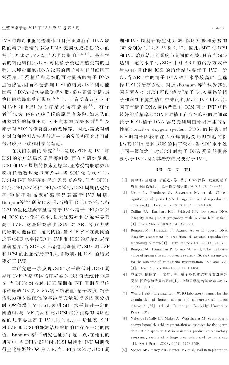 精子DNA碎片对辅助生殖技术治疗方式的影响