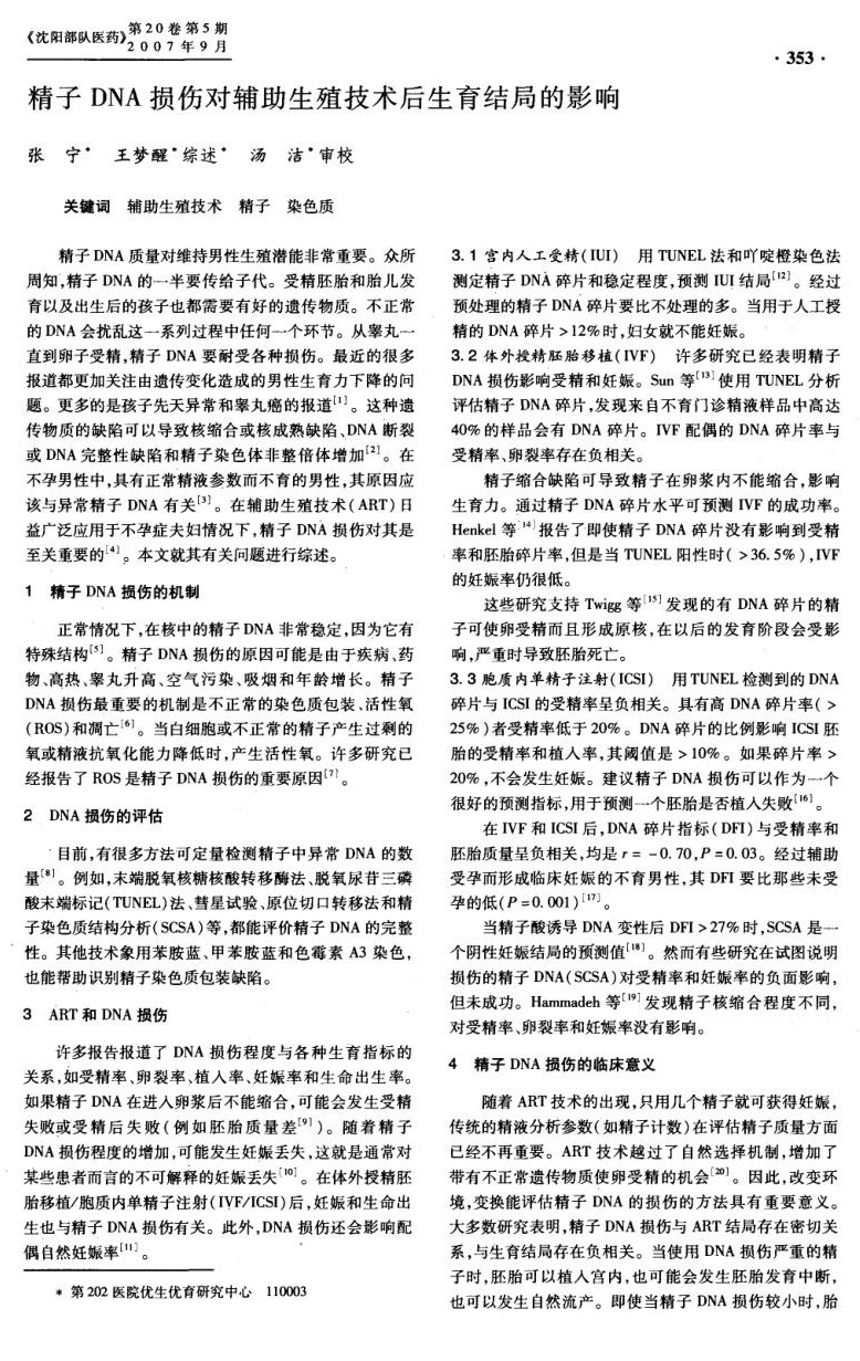 精子DNA损伤对辅助生殖技术后生育结局的影响