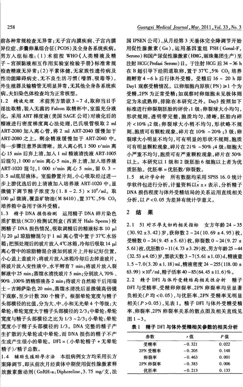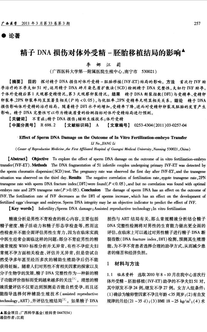 精子DNA损伤对体外受精-胚胎移植结局的影响